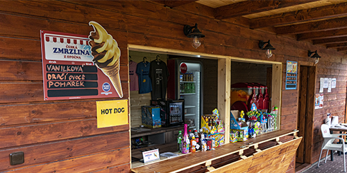 Nemusíte chodit daleko pro občerstvení! Přímo u vstupu do Nafukovacího ráje najdete prodejní okénko, kde si můžete koupit chlazené nápoje, osvěžující ledovou tříšť, lákavé hot dogy, točenou zmrzlinu a různé sladkosti pro děti. Vše pohodlně na jednom místě, abyste si mohli užívat zábavu bez přerušení.